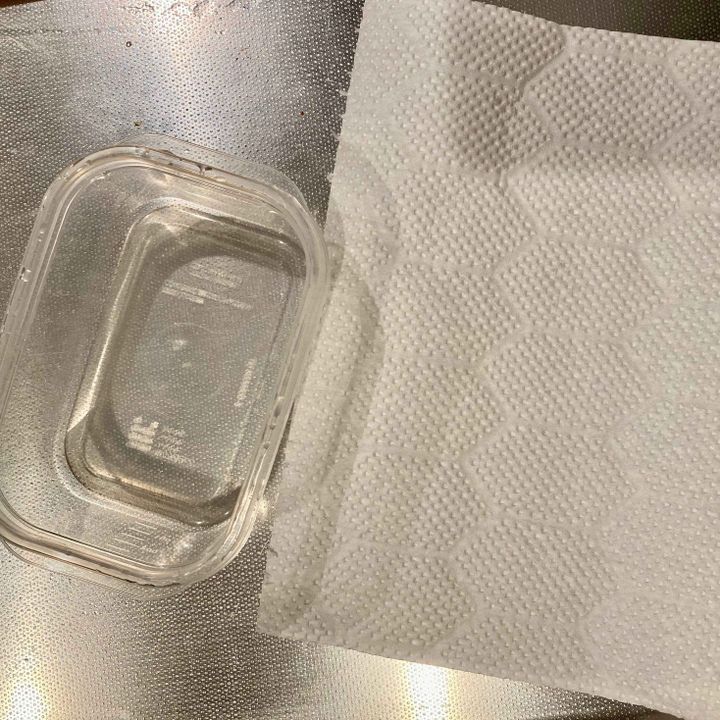 タッパーとキッチンペーパーです。