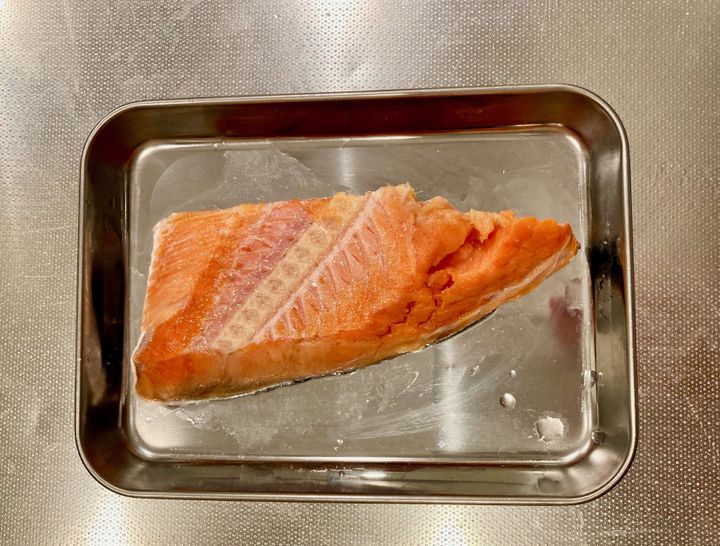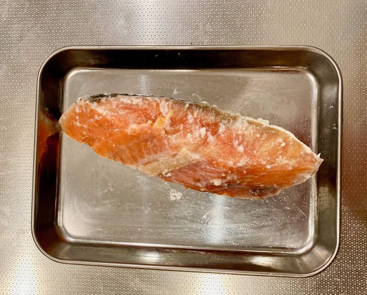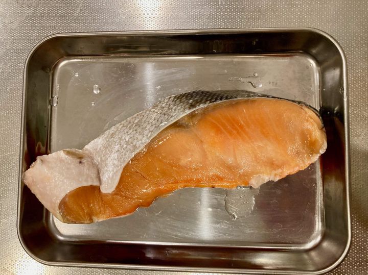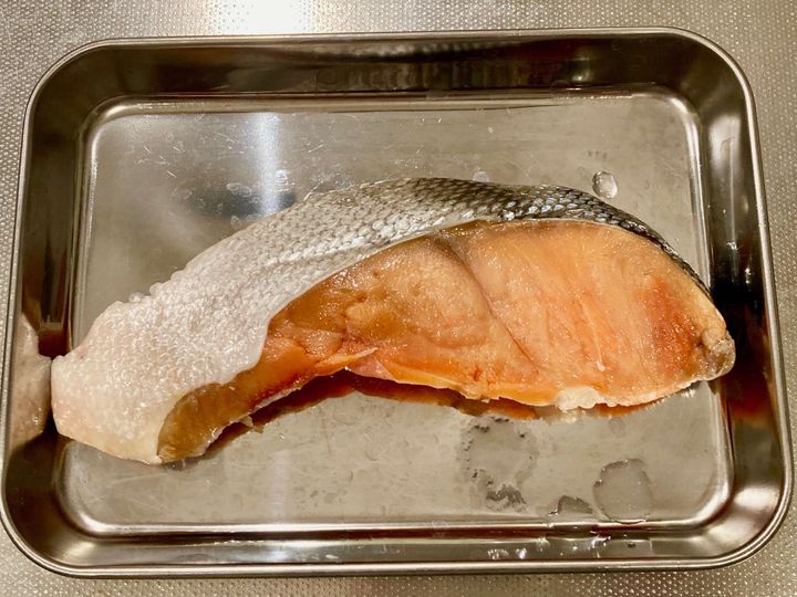 取り出した鮭は色もよく、塩水のものと同じくみずみずしさが残っています。