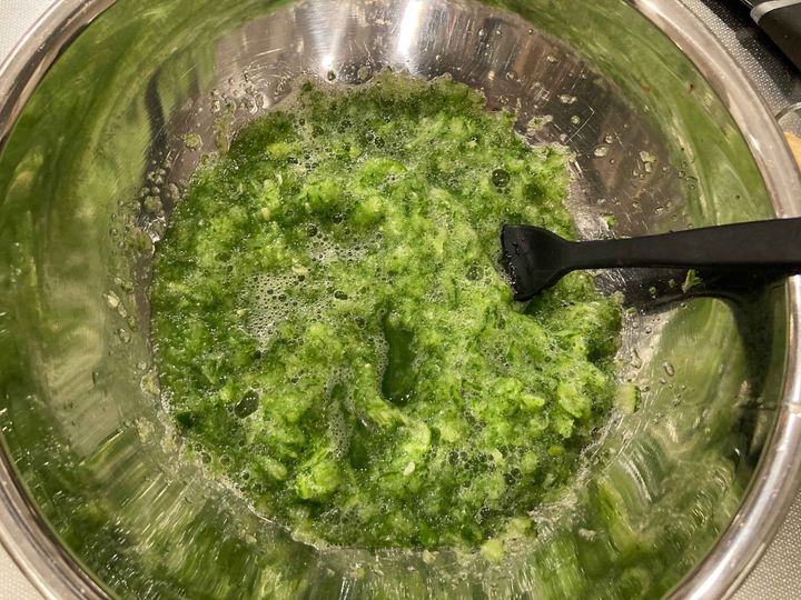 きゅうりをすりおろします。ミキサーやブレンダーを使って楽に!なくてもおろし金で下ろせばOK