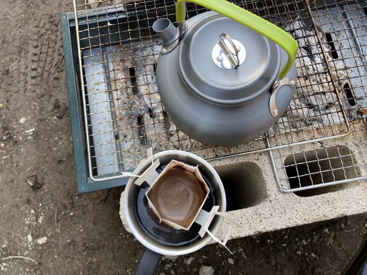BBQを楽しんだあとの炭でお湯を沸かしてチェアリング。