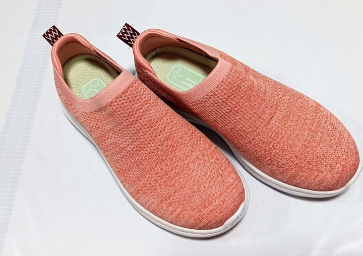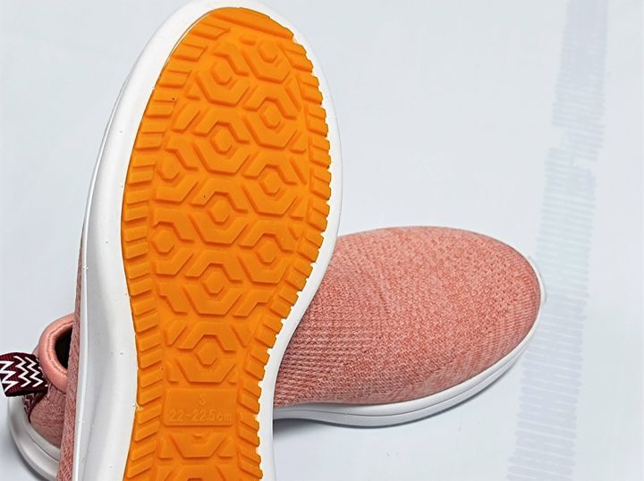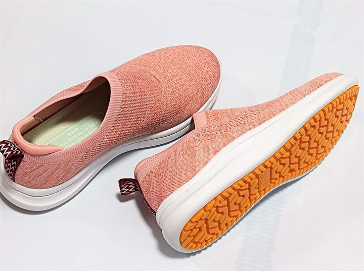 ワークマンのファイングリップシューズといえば、機能的だけれどナイロン製が強いと商品でしたが、こちらは素材もニット、そしてカラーもこのような可愛いカラーが用意されています。