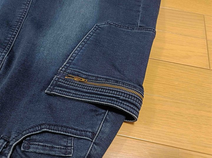 さらに、普通のポケットが横に2つ、ヒップ部分にもポケット2つ、さらに大きなポケットが2つ、そして、大きなポケットの上にもう一つチャック付きのポケットが1つ。合計なんと7つもついています。