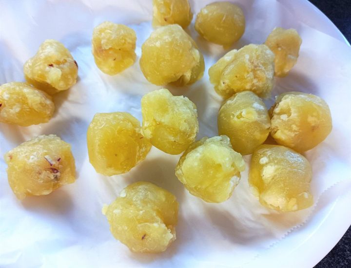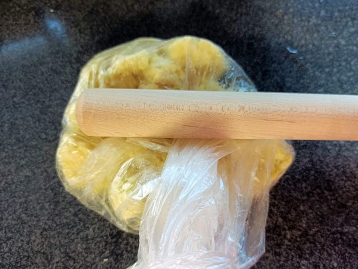 3. 取り出したらとても熱いので、麺棒などでつぶしてください。