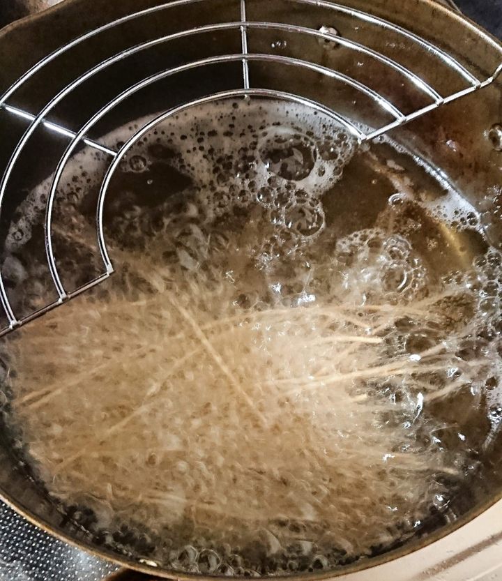2. 180℃の油で10秒ほど揚げる。