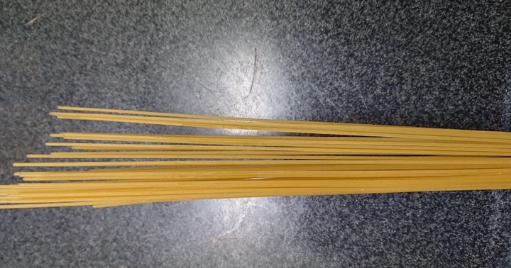 1. パスタはそのままの長さだとお鍋に入らないので半分に割ります。