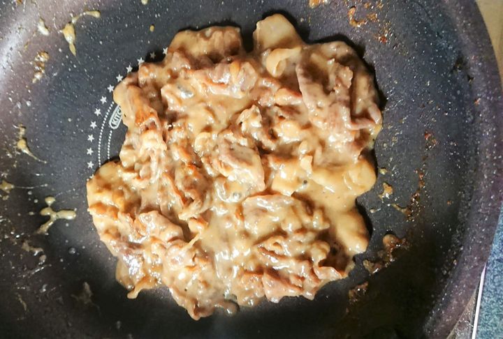 また筆者がおすすめする楽しみ方は、お肉と絡める「溶かし餅ソースの豚肉甘辛焼き」です。