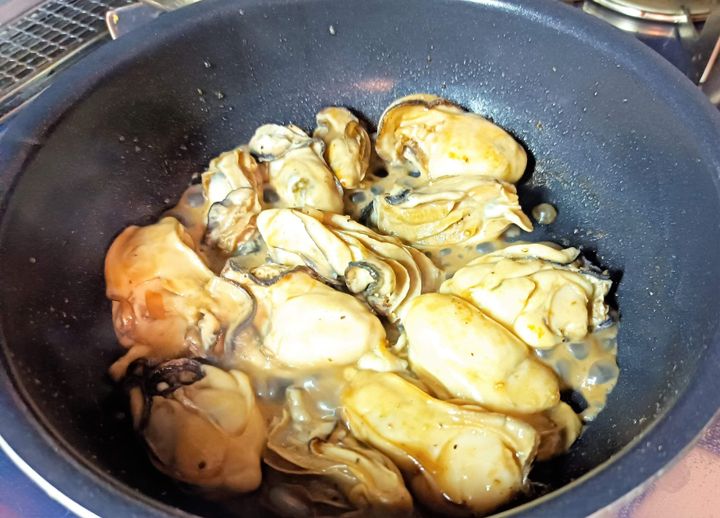 今回は生食用の牡蠣を使ったので、さっと火を通して楽しみました。加熱用の牡蠣を使う場合はしっかりと火を通してください。