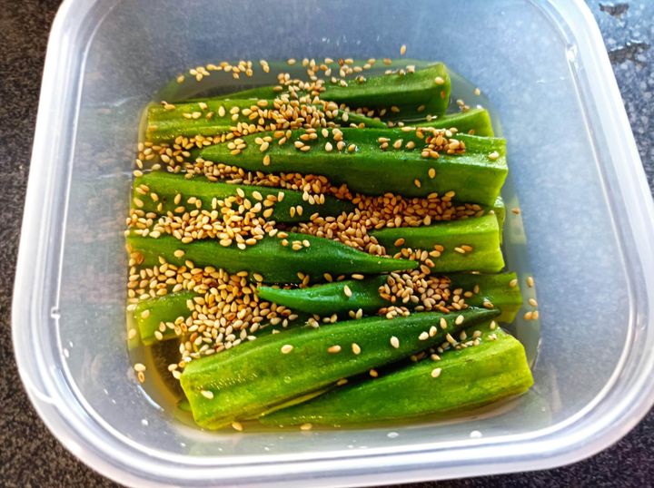 オクラは茹でたら細かく刻んで食べるという方も多いかと思いますが、白だしに漬けるだけでおいしさがグーンとUP!そしてひえひえと楽しめるネバトロ副菜が出来上がります。