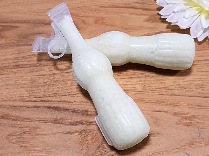 実際に試してみました。パッケージにはなめらかフローズンスムージーと書かれていましたが、なめらかなスムージーの食感に加えてたまにガリっとする氷菓子のような食感が楽しい!