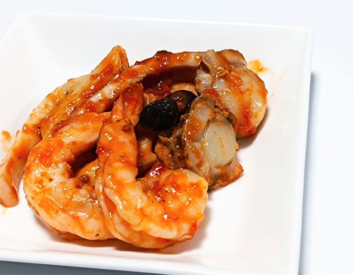 お皿に盛りつけると豪華! トマトソースがたっぷり絡んで、シーフードに旨味も加わっているのでどんどん食がすすみます。