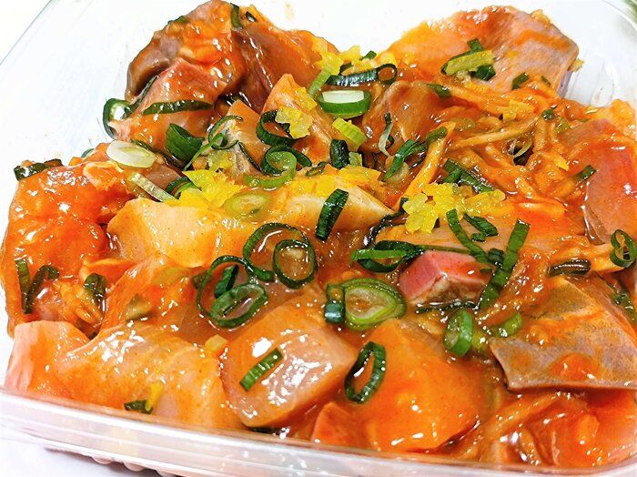 できあがった本体に取り出しておいたソースをお好みの濃さでかけて混ぜればできあがりです。