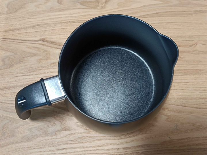 そしてこのお鍋についている注ぎ口。お鍋で汁ものを作ったときに、最後に残った少しのお汁はお玉ではなかなかとりにくくて、鍋からお椀に入れることをされることもあるかと思います。そのときにこぼしてしまったりすることが多かった筆者は、この注ぎ口がついていることでとても簡単にこぼすことなくお汁を入れることができるようになりました。