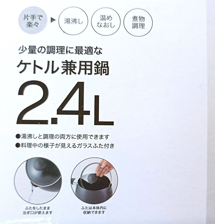 ニトリで発見した鍋は「ケトル兼用鍋」です。名前からして兼用していますよね。