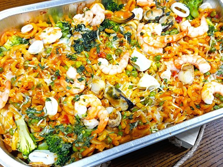 子ども達も大喜びだった「シーフードパスタパエリア」