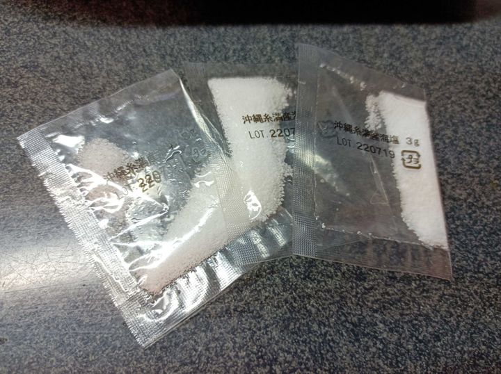 1パックにサク2本が入っていました。すごい量です。そして沖縄の塩は3袋(1袋3g)ついていました。