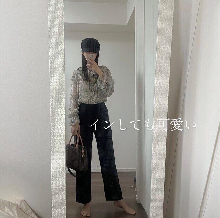 夏はTシャツをインして着て、春秋はブラウスと、冬はニットと合わせて着ることができるのでオールシーズン着回せます。