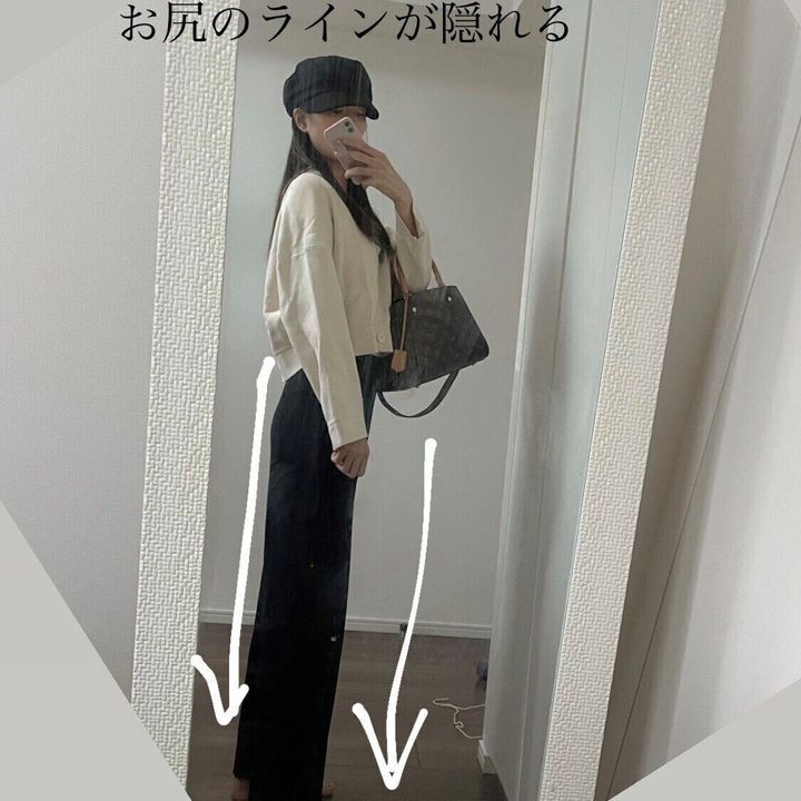 適度にゆとりあるテーパードパンツなので気になるお尻のラインや太もものラインは拾わないのでどんな体型の方でも気になりません。