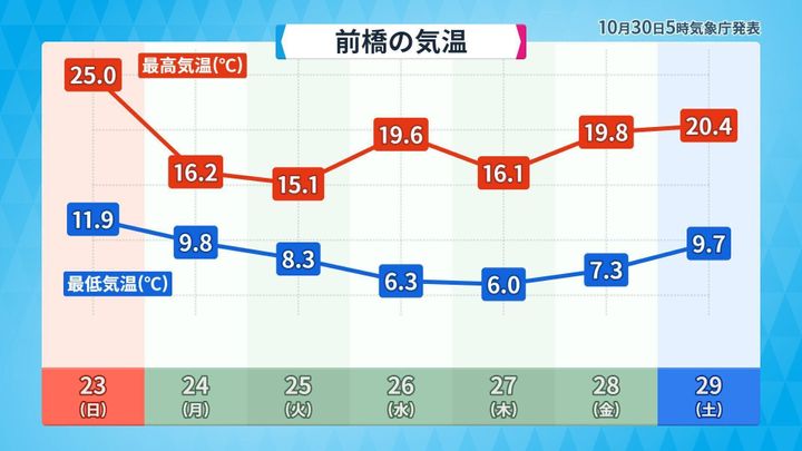 23日(日)から24日(月)にかけては最高気温が8.8℃