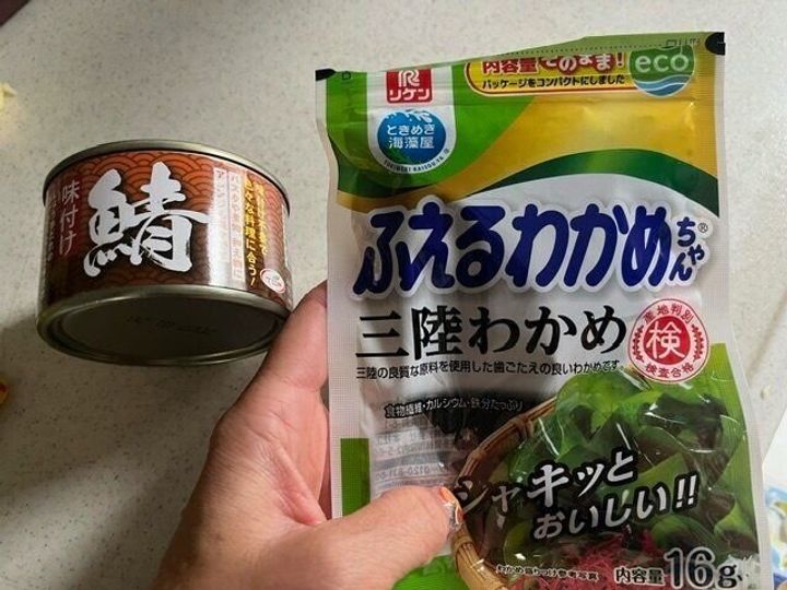 今回は「ふえるわかめちゃん」と一緒に栄養も豊富で常温保存が可能なサバ缶を使う事にしました。