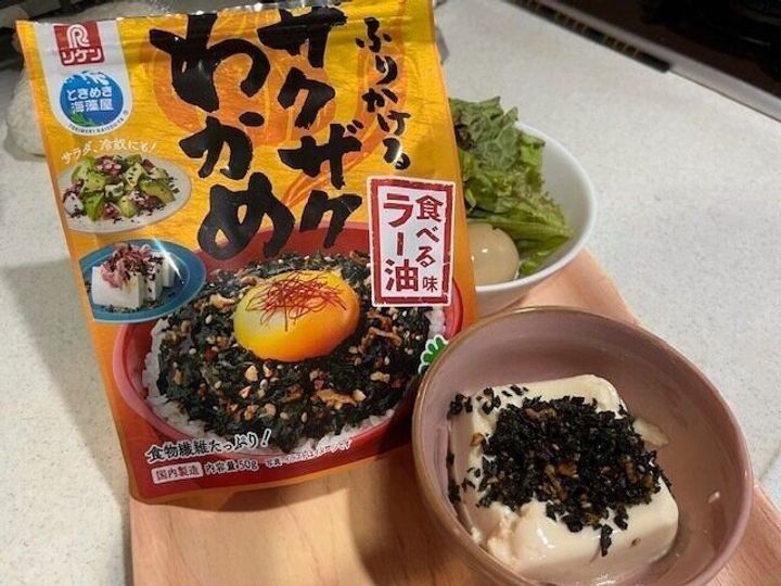 続いてはこちら。「ふりかけるザクザクわかめ」食べるラー油味