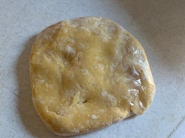 3.全体が混ざったらラップで生地を包み、軽く手でもみ冷蔵庫で休ませる。