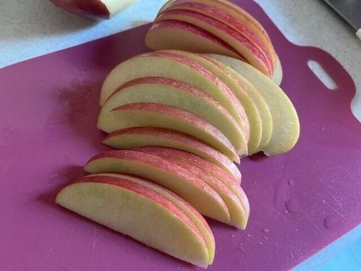 4.生地を休ませている間にりんごをカット。りんごは皮付きのまま(皮がいやな人は皮をむいてもOK)