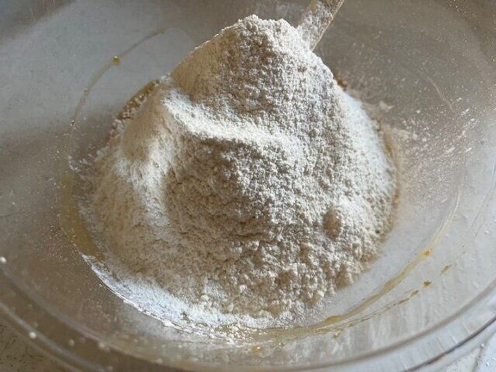 2.振るった薄力粉を加えてざっくりと混ぜる。