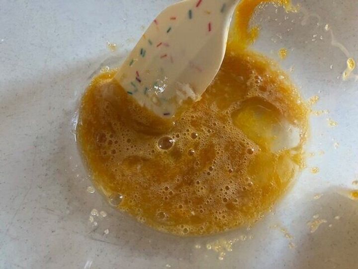 1.ボウルの卵、砂糖を入れぐるぐる混ぜ、レンジや湯煎等で溶かしたバターを加えてさらによく混ぜる。