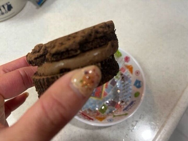 半分に切ってみると断面はこんな感じで、半分に切ってもあいだのクリームが流れない!