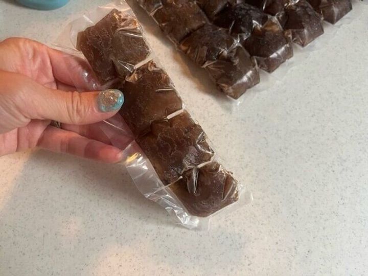 使いたい分だけはさみなどで切って使います。切るとするっと氷が出てきます。