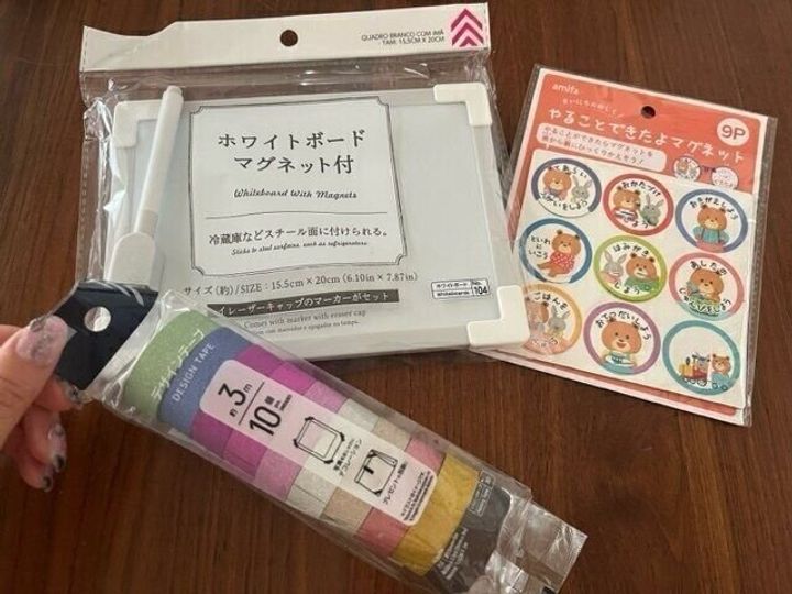 やることできたよマグネットに加え、ホワイトボードマグネット付きとマスキングテープを