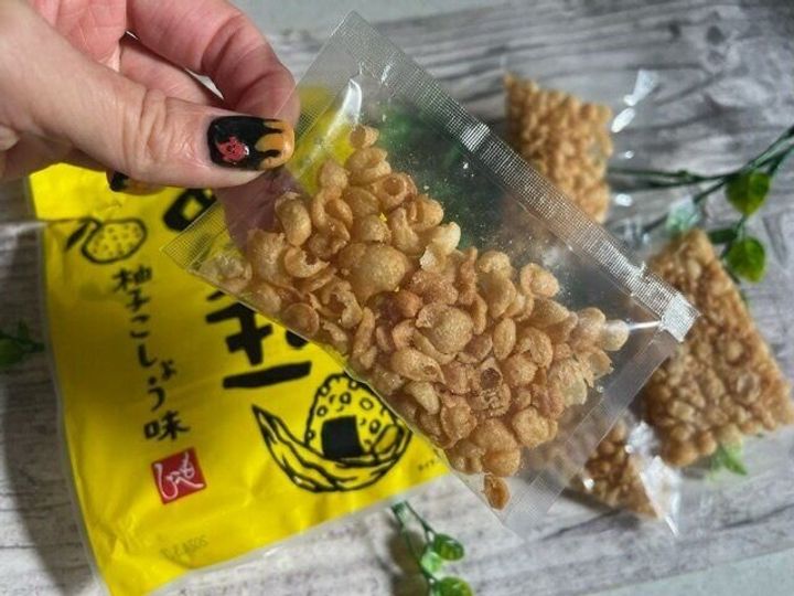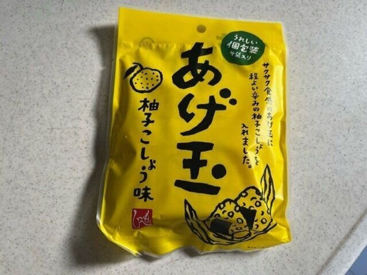 見た目は一見普通のあげ玉のようにみえますが、ゆず胡椒の味がついているようです。
