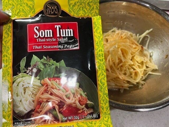 本来は青パパイヤで作るサラダなのですが、今回は大根で代用してみました!