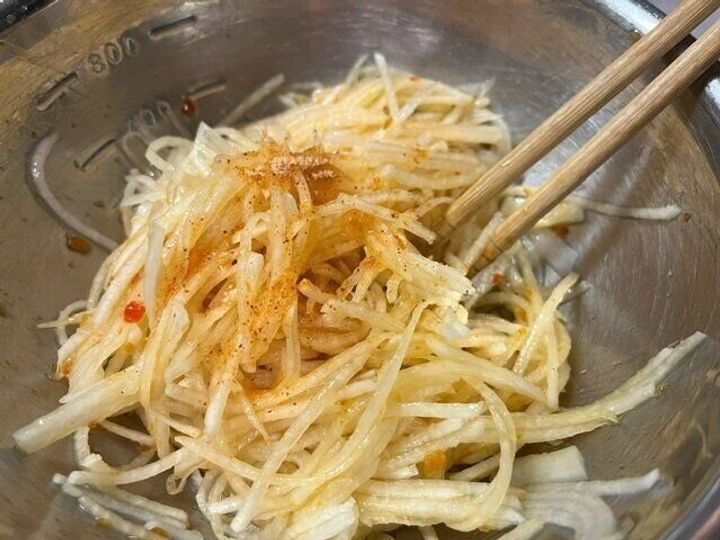 千切りにした大根に1袋目のソースを混ぜ合わせます。