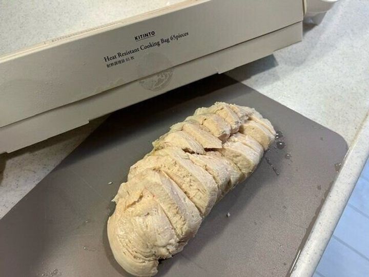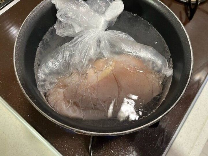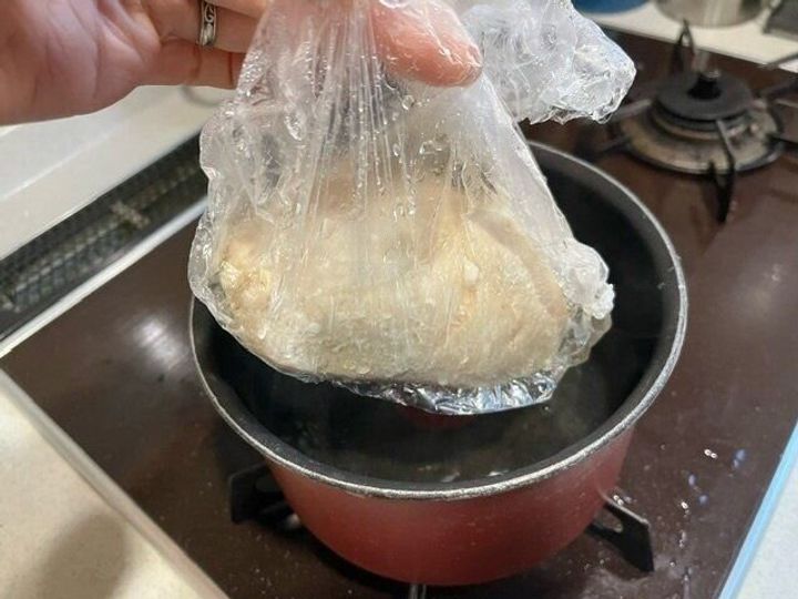一晩経ったら鶏胸肉を湯煎にかけるのですが、この調理袋はこのまま湯煎にかけられると言うことなので