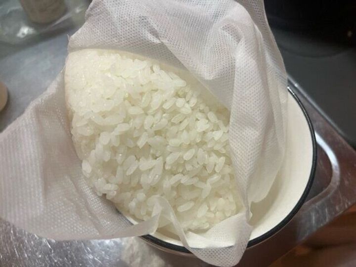 20分後、お湯を捨てお米の袋を鍋に戻し、フタをしてそのまま15分から20分ほど待ちます。