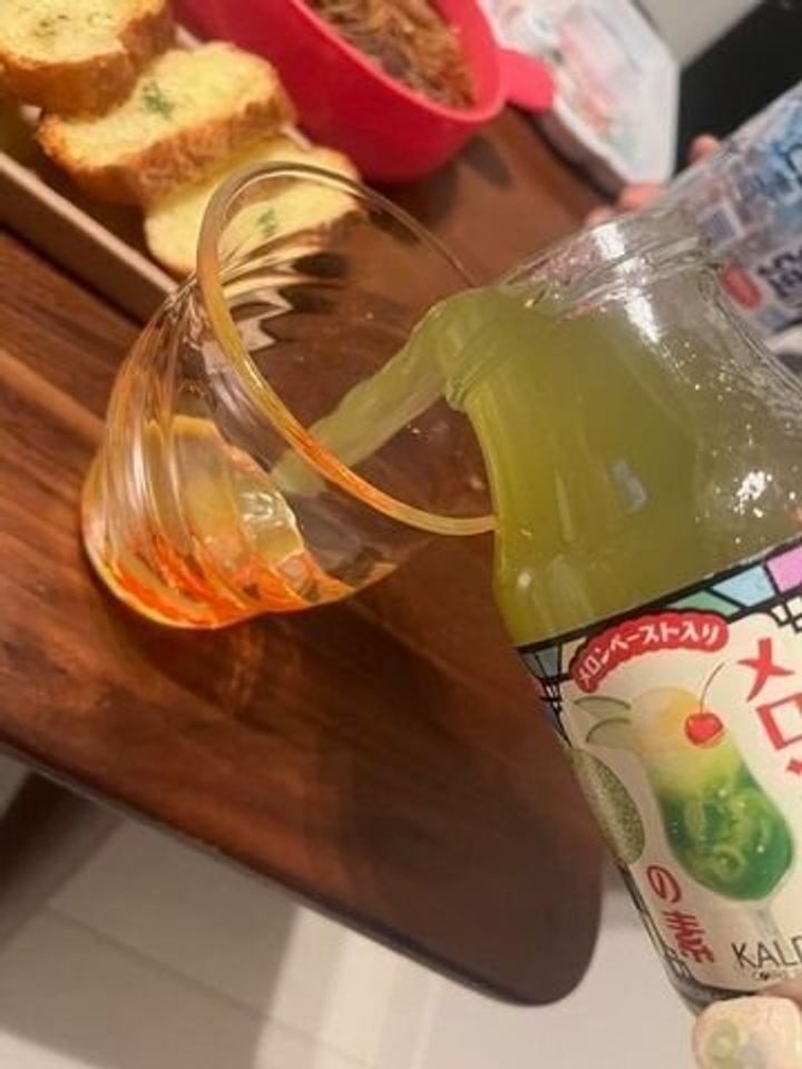 どろっとしていて、よく見るとメロンの果肉が入っているようで、グラスに入れた瞬間もメロンの香りが