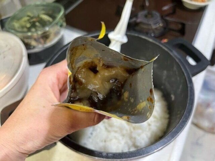 茶色っぽいのはきくらげのようです。これが「中華おこわ」の素のようです。
