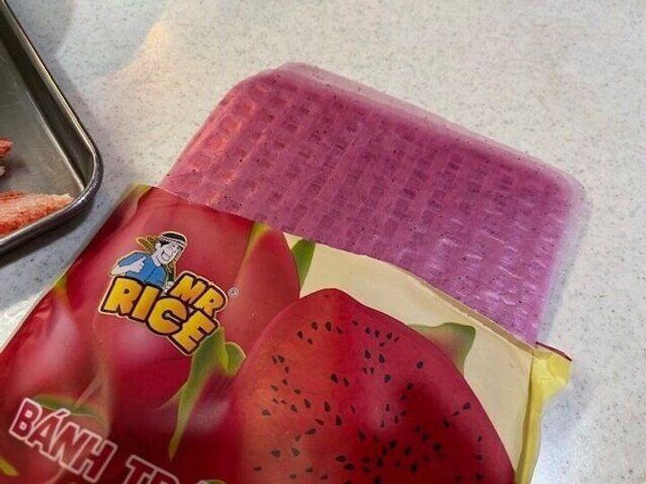 袋から出してみると、ちゃんと「ライスペーパー」でした。ドライフルーツの果汁が混ざっている