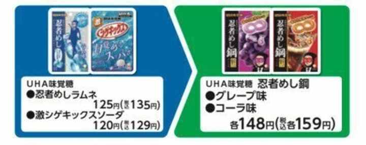 UHA味覚糖「忍者めしラムネ」か「激シゲキックス極刺激ソーダ」のどちらかを購入すると、次の週に「忍者めし鋼」の「グレープ味」か「コーラ味」に引換えられる!