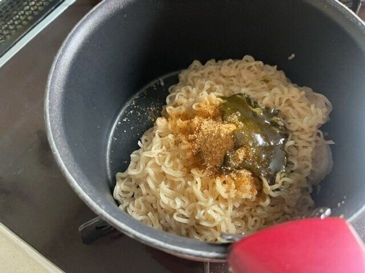 茹で上がった麺に付属の粉末と調味料を加えてよく混ぜたら出来上がりみたいです!