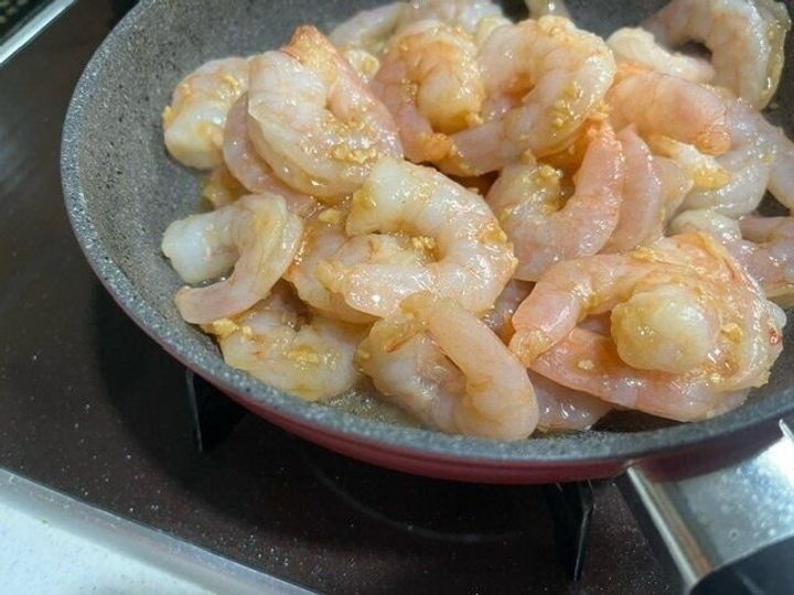 完成しました!今回は殻なしの少し小ぶりの海老を使ったので、パッケージとは違いますが