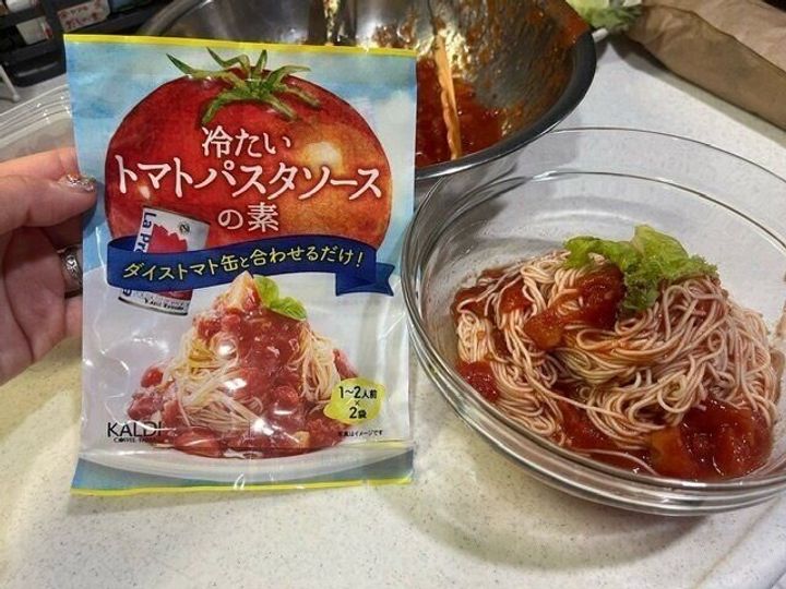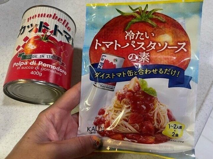 【カルディ】材料たった2つだけ!トマト缶だけあれば出来る!本格冷製トマトパスタ。