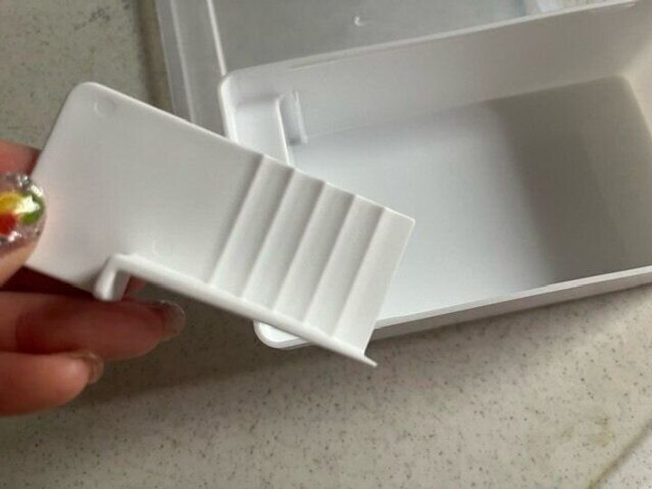 さらに、このケース自体に取っ手が付いているのも超便利!バターなど冷蔵庫の奥のほうや上の方にしまいがちでも
