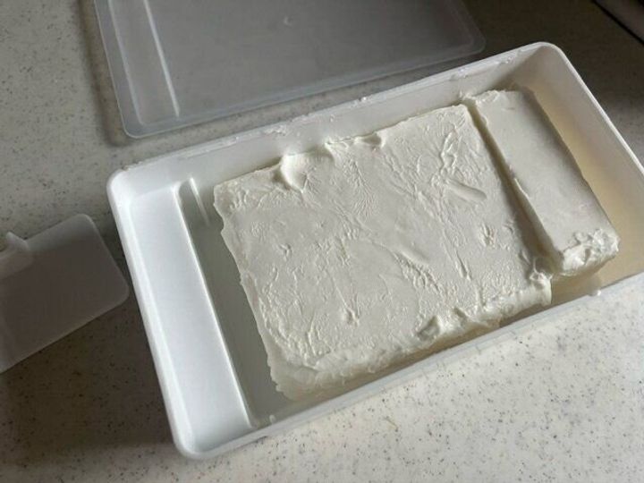 早速入れて見ました。これはケーキ用マーガリン200gです。すっぽりピッタリ入りました。