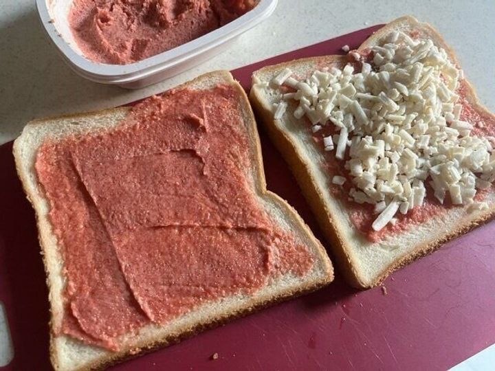 まずは普通に食パンに塗って見ました。結構たっぷりめに塗りました。隣はチーズをトッピング。