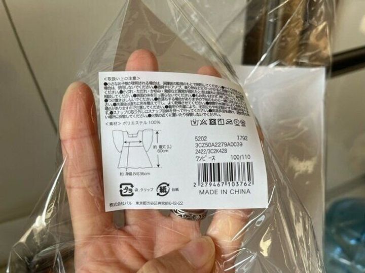 ワンピースのサイズはこんな感じ。着丈は60㎝。サイズ的には100~110と記載があったので
