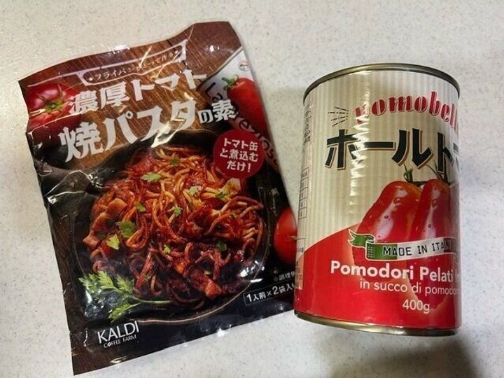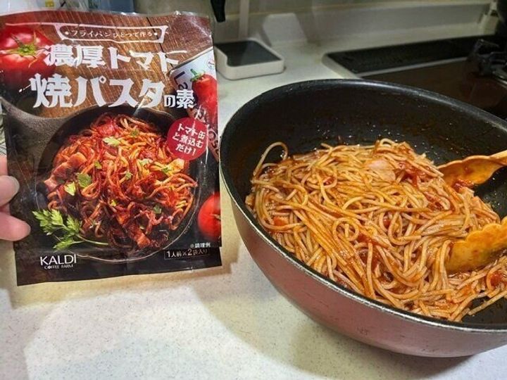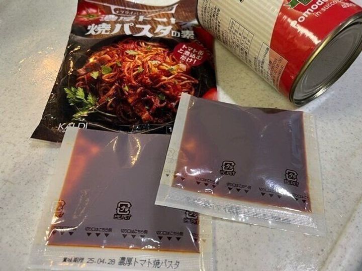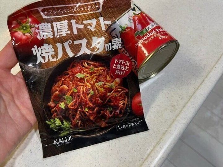 【カルディ】トマト缶1個あればすぐできる!濃厚トマト焼きパスタの素