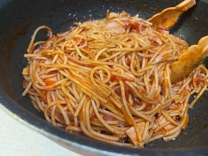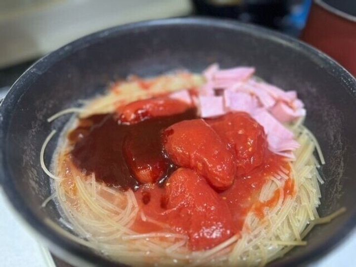 フライパンのみ、トマト缶だけあれば作れる焼きパスタのお味は…