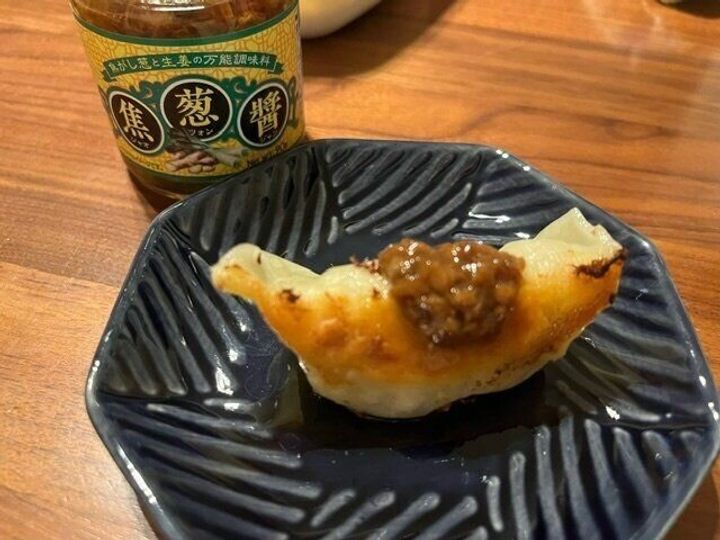 その日のメニューが餃子だったので餃子にトッピングしてみました。